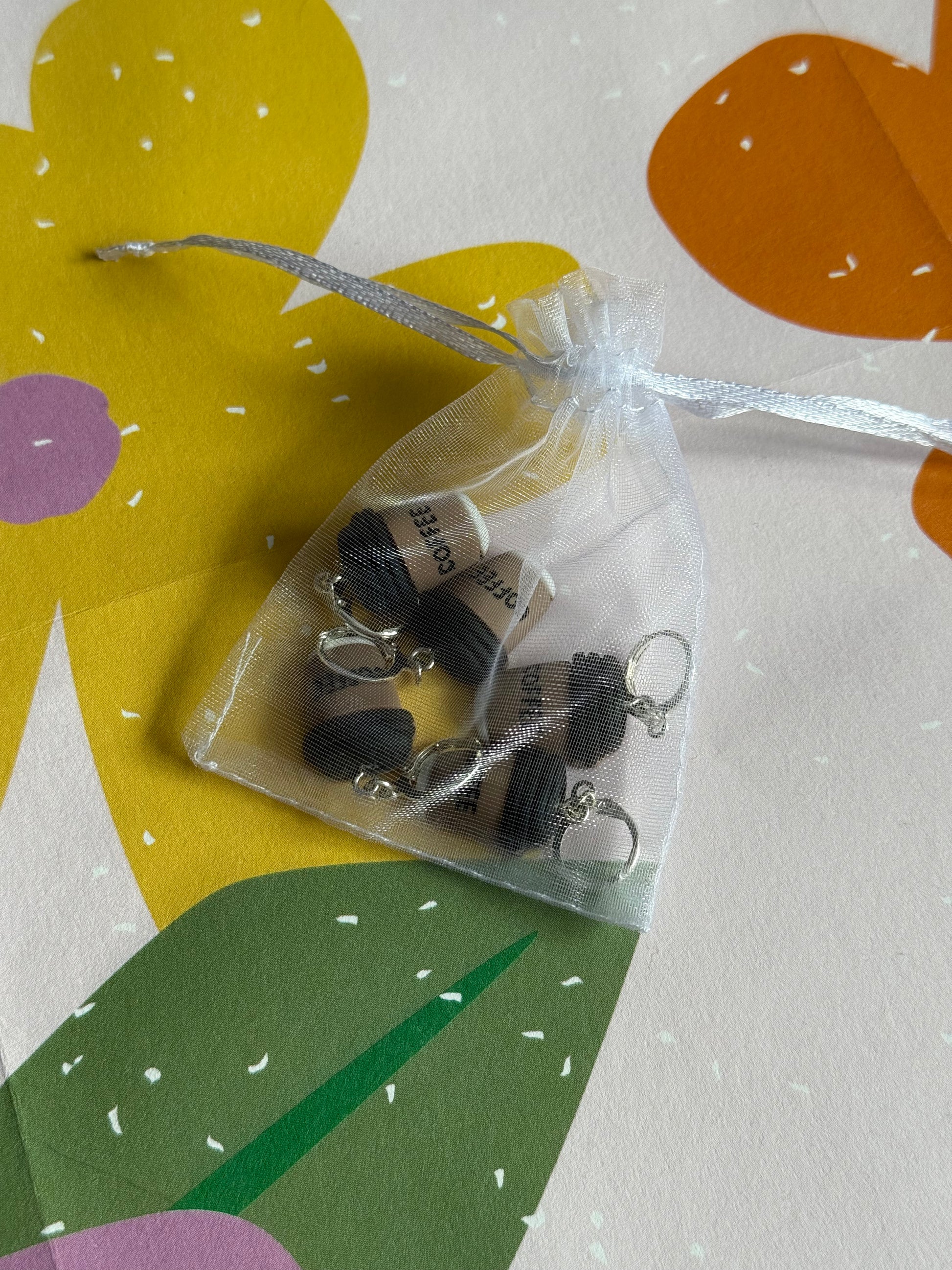 Add a slice of fun to your crochet or knitting projects with this adorable coffee stitch marker. Hand crafted, this cute and functional accessory will help you keep track of your stitches while bringing a playful touch to your work. Perfect for coffee lovers and crafters alike!