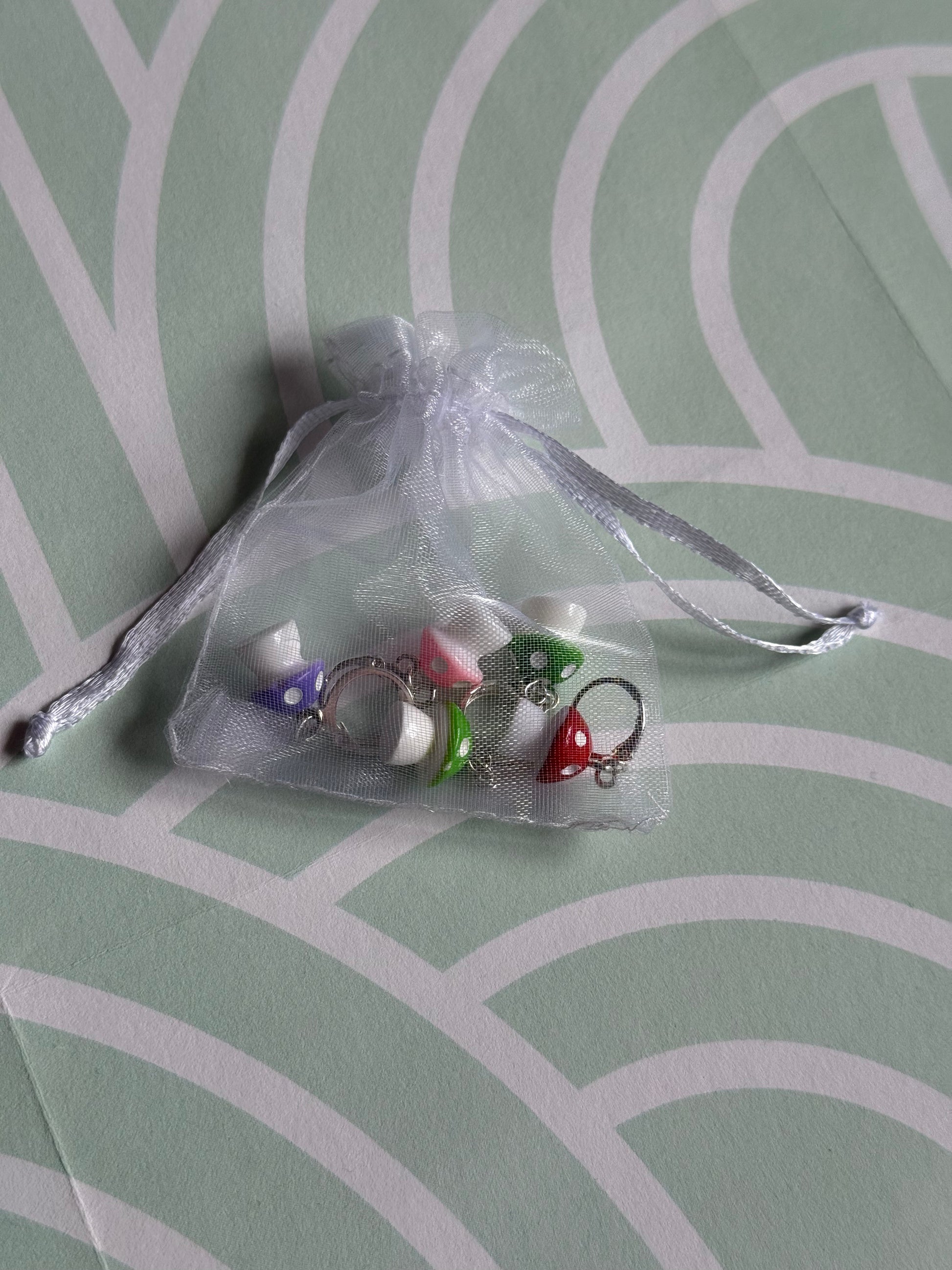 Add a slice of fun to your crochet or knitting projects with this adorable mushroom stitch marker. Hand crafted, this cute and functional accessory will help you keep track of your stitches while bringing a playful touch to your work. Perfect for mushroom lovers and crafters alike!